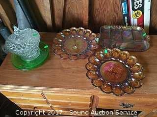 Lot #0005: Iridescent Depression Glass Serving Dishes & More