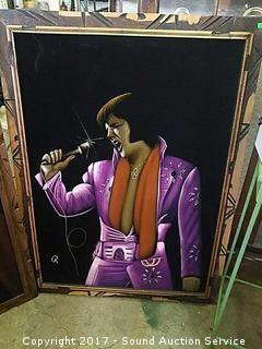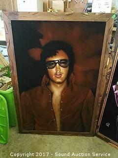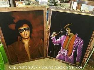 Lot #0210: Large Felt Elvis Portraits W/ Rustic Wood Frames