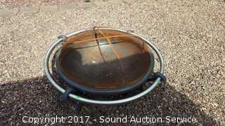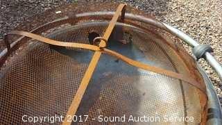 44" diameter and 22" tall with wire mesh top. Has awesome chrome foot rail also