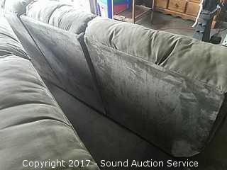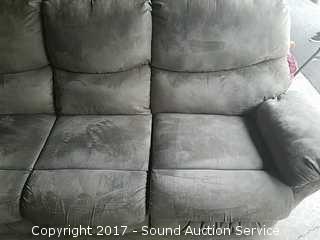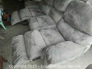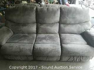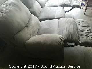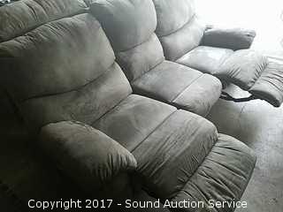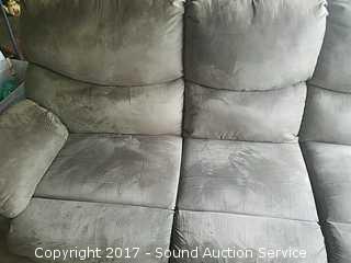 Lot #0010: Sage Green Microfiber Double Reclining Sofa