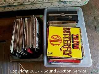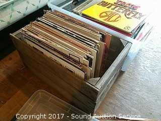 Lot #0147: Tote and Crate Loaded w/records and 8 tracks