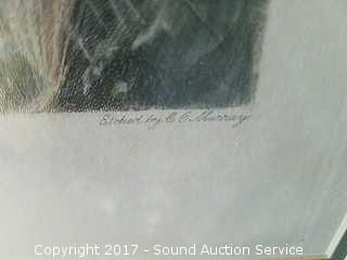 Lot #0046: Vintage Framed Etching "Ring of Roses"