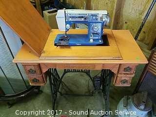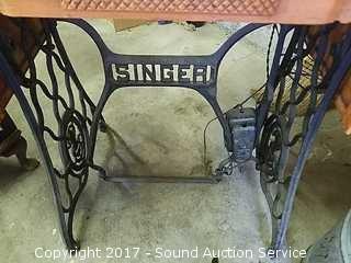 Lot #0080: Vintage Morse Sewing Machine & Singer Sewing Cabinet