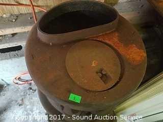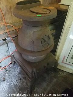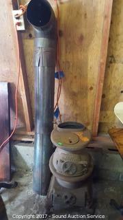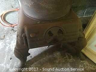 Lot #0009: Vintage Sears Cast Iron Potbelly Stove & Chimney