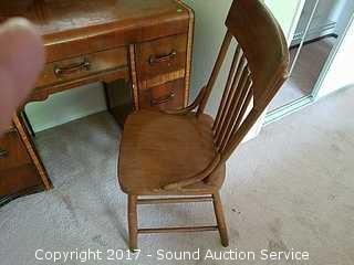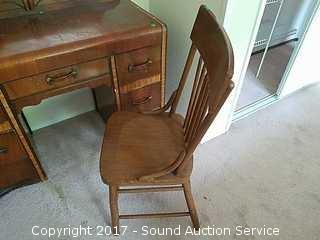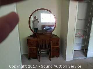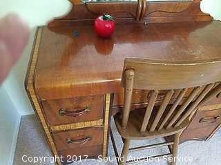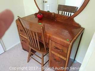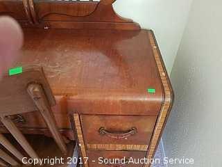 Lot #0314: Vintage Waterfall Front Vanity and Chair