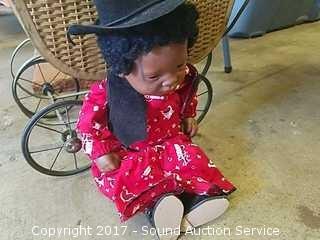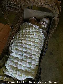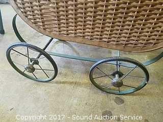 Lot #0087: Vintage Wrought Iron Doll Stroller W/ Dolls