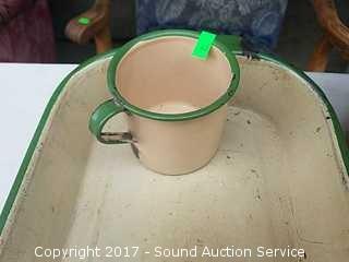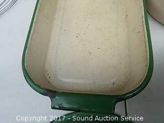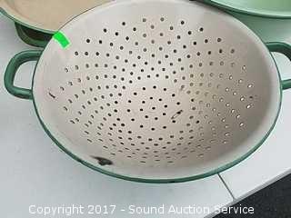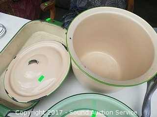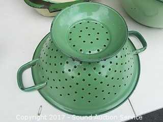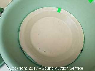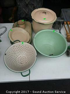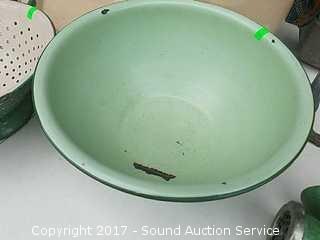 Lot #0022: Vtg Green Enamelware Pans, Bowls & More