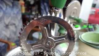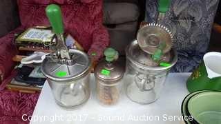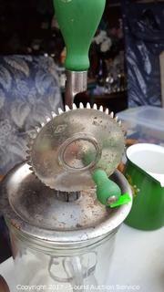 Lot #0032: Vtg. Green Hand Mixers W/ Glass Jars & Chopper