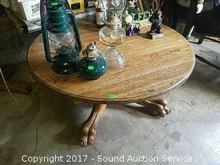Lot #0206: Vtg. Oak Round Claw Foot Coffee Table