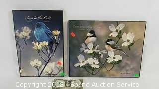 Has religious quotes. Approx. 9" x 13" and 14" x 11". The auctioneer shall not be responsible for the correct description, authenticity, genuineness of, estimated selling price of, or defect in any lot, and makes no warranty in connection therewith. No allowance will be made or sale set aside on account of any incorrectness, error in cataloging, or any imperfection not noted. No deduction will be allowed on damaged articles as all goods being exposed for public exhibition are sold “as is” and without recourse. All measurements and sizes - are approximate. CLAIMS - No claims will be allowed after goods are removed from premises. All lots - to be sold AS IS, WHERE IS. ALL SALES FINAL, WE DO NOT ACCEPT RETURNS.
