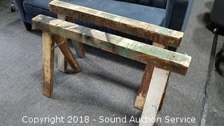 Lot #0152: (2) Heavy Duty Solid Wood Sawhorses