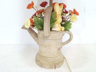Lot #0046: 21" Watering Can w/Silk Flowers Table Lamp