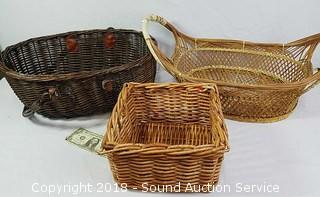 Lot #0080: (3) Nice Wicker Woven Baskets