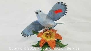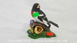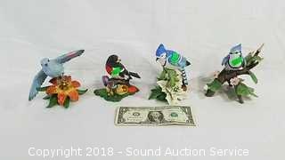 Hand crafted, extremely detailed. Includes: "Christmas Blue Jay", "Female Blue Jay", "Mountain Blue Bird", and "Rose Breasted Grosbeak". No chips or cracks. Approx. 4" to 5" H. The auctioneer shall not be responsible for the correct description, authenticity, genuineness of, estimated selling price of, or defect in any lot, and makes no warranty in connection therewith. No allowance will be made or sale set aside on account of any incorrectness, error in cataloging, or any imperfection not noted. No deduction will be allowed on damaged articles as all goods being exposed for public exhibition are sold “as is” and without recourse. All measurements and sizes - are approximate. CLAIMS - No claims will be allowed after goods are removed from premises. All lots - to be sold AS IS, WHERE IS. ALL SALES FINAL, WE DO NOT ACCEPT RETURNS.