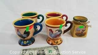 Lot #0170: (4) Rooster Themed Mugs & Small Jar