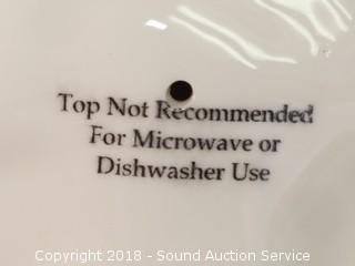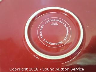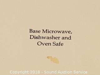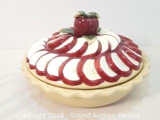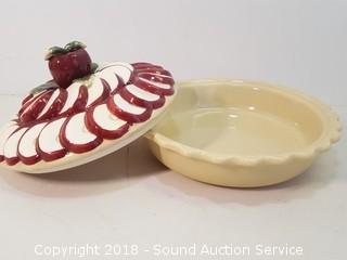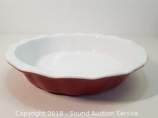 Pie dish is 10" diameter. The auctioneer shall not be responsible for the correct description, authenticity, genuineness of, estimated selling price of, or defect in any lot, and makes no warranty in connection therewith. No allowance will be made or sale set aside on account of any incorrectness, error in cataloging, or any imperfection not noted. No deduction will be allowed on damaged articles as all goods being exposed for public exhibition are sold “as is” and without recourse. All measurements and sizes - are approximate. CLAIMS - No claims will be allowed after goods are removed from premises. All lots - to be sold AS IS, WHERE IS. ALL SALES FINAL, WE DO NOT ACCEPT RETURNS.
