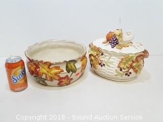 Lot #0055: Cracker Barrel Soup Tureen & Harvest Serving Bowl