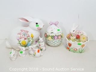 Lot #0089: Porcelain Easter Decor, Covered Dishes & S/P's