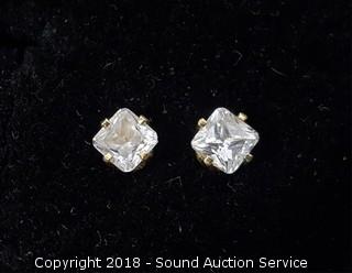 Lot #0067: 14K Gold & Clear Gemstone Stud Earrings