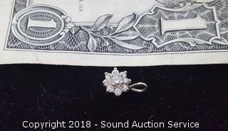 Approx. (8) 1/4" diameter stones. The auctioneer shall not be responsible for the correct description, authenticity, genuineness of, estimated selling price of, or defect in any lot, and makes no warranty in connection therewith. No allowance will be made or sale set aside on account of any incorrectness, error in cataloging, or any imperfection not noted. No deduction will be allowed on damaged articles as all goods being exposed for public exhibition are sold “as is” and without recourse. All measurements and sizes - are approximate. CLAIMS - No claims will be allowed after goods are removed from premises. All lots - to be sold AS IS, WHERE IS. ALL SALES FINAL, WE DO NOT ACCEPT RETURNS.