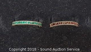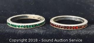 Lot #0027: (2) Sterling Rings w/Green & Red Stones - Size 7