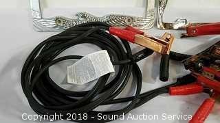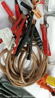 Lot #0132: Jumper Cables, Bottle Jack, License Plate Covers