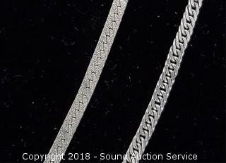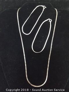 Lot #0036: Pair of Sterling Silver Bracelets & Necklace