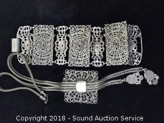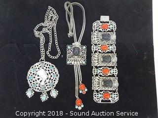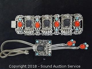 Lot #0024: Paneled Bracelet w/Matching Bolo Tie Necklace