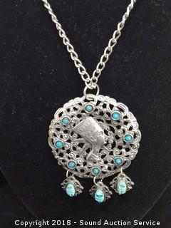 Also comes with another necklace. Bracelet is approx. 7" L, 2" W. Egyptian pendant is 2-1/2". The auctioneer shall not be responsible for the correct description, authenticity, genuineness of, estimated selling price of, or defect in any lot, and makes no warranty in connection therewith. No allowance will be made or sale set aside on account of any incorrectness, error in cataloging, or any imperfection not noted. No deduction will be allowed on damaged articles as all goods being exposed for public exhibition are sold “as is” and without recourse. All measurements and sizes - are approximate. CLAIMS - No claims will be allowed after goods are removed from premises. All lots - to be sold AS IS, WHERE IS. ALL SALES FINAL, WE DO NOT ACCEPT RETURNS.