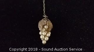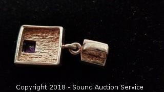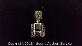 Pendant has Marcasite, Onyx & Amethyst Settings. TW: 15g. The auctioneer shall not be responsible for the correct description, authenticity, genuineness of, estimated selling price of, or defect in any lot, and makes no warranty in connection therewith. No allowance will be made or sale set aside on account of any incorrectness, error in cataloging, or any imperfection not noted. No deduction will be allowed on damaged articles as all goods being exposed for public exhibition are sold “as is” and without recourse. All measurements and sizes - are approximate. CLAIMS - No claims will be allowed after goods are removed from premises. All lots - to be sold AS IS, WHERE IS. ALL SALES FINAL, WE DO NOT ACCEPT RETURNS.