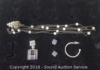 Lot #0072: Sterling Silver Earrings, Necklace & Pendant
