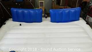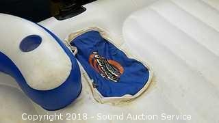 Patched one hole, holds air. Has some sight staining. Approx. 11-1/2ft x 8-1/2ft. The auctioneer shall not be responsible for the correct description, authenticity, genuineness of, estimated selling price of, or defect in any lot, and makes no warranty in connection therewith. No allowance will be made or sale set aside on account of any incorrectness, error in cataloging, or any imperfection not noted. No deduction will be allowed on damaged articles as all goods being exposed for public exhibition are sold “as is” and without recourse. All measurements and sizes - are approximate. CLAIMS - No claims will be allowed after goods are removed from premises. All lots - to be sold AS IS, WHERE IS. ALL SALES FINAL, WE DO NOT ACCEPT RETURNS.