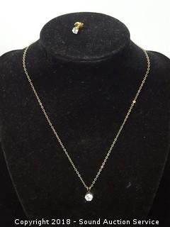 Earrings are for pierced ears, you only get one. Has a 16" chain. The auctioneer shall not be responsible for the correct description, authenticity, genuineness of, estimated selling price of, or defect in any lot, and makes no warranty in connection therewith. No allowance will be made or sale set aside on account of any incorrectness, error in cataloging, or any imperfection not noted. No deduction will be allowed on damaged articles as all goods being exposed for public exhibition are sold “as is” and without recourse. All measurements and sizes - are approximate. CLAIMS - No claims will be allowed after goods are removed from premises. All lots - to be sold AS IS, WHERE IS. ALL SALES FINAL, WE DO NOT ACCEPT RETURNS.