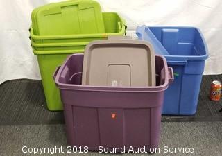 Lot #0176: 5 Sterilite 20 Gal & Rubbermaid 18 Gal Totes w/Lids