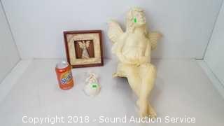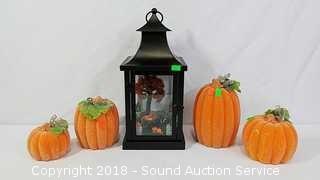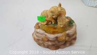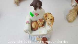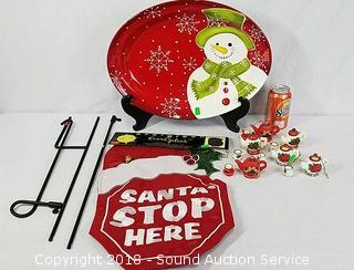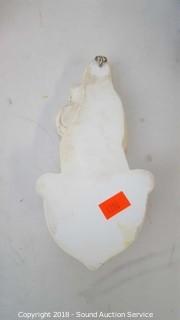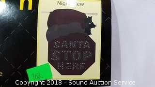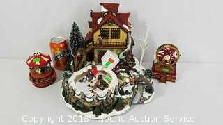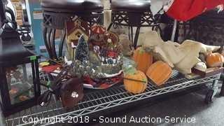 Modern 18" Bronze Finish Table Lamp - No Shade, Mary Engelbreit Accent Mirror (Approx. 37" x 12-1/2"), Various Kitty Cat Decor (Key Rack, Cat Mug, Real Fur Cat Figurine, Music Boxes), Angel Decor, Beaded Pumpkin & Lantern Halloween Luminaries, Santa Flag, Platter & Ornament Christmas Decor, Fiber Optic Mill Scene & Musical Carousels. The auctioneer shall not be responsible for the correct description, authenticity, genuineness of, estimated selling price of, or defect in any lot, and makes no warranty in connection therewith. No allowance will be made or sale set aside on account of any incorrectness, error in cataloging, or any imperfection not noted. No deduction will be allowed on damaged articles as all goods being exposed for public exhibition are sold “as is” and without recourse. All measurements and sizes - are approximate. CLAIMS - No claims will be allowed after goods are removed from premises. All lots - to be sold AS IS, WHERE IS. ALL SALES FINAL, WE DO NOT ACCEPT RETURNS.