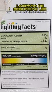 180 Degree Detection, Adjustable Double Lights, 2500 Lumens. Comes in original box. The auctioneer shall not be responsible for the correct description, authenticity, genuineness of, estimated selling price of, or defect in any lot, and makes no warranty in connection therewith. No allowance will be made or sale set aside on account of any incorrectness, error in cataloging, or any imperfection not noted. No deduction will be allowed on damaged articles as all goods being exposed for public exhibition are sold “as is” and without recourse. All measurements and sizes - are approximate. CLAIMS - No claims will be allowed after goods are removed from premises. All lots - to be sold AS IS, WHERE IS. ALL SALES FINAL, WE DO NOT ACCEPT RETURNS.