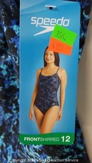 Lot #0156: NWT Speedo One Piece Blue Bathing Suit - Size 12