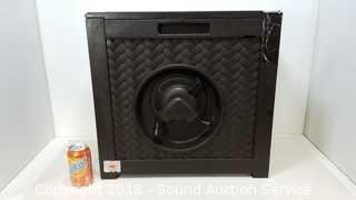 20" X 20" X 13". The auctioneer shall not be responsible for the correct description, authenticity, genuineness of, estimated selling price of, or defect in any lot, and makes no warranty in connection therewith. No allowance will be made or sale set aside on account of any incorrectness, error in cataloging, or any imperfection not noted. No deduction will be allowed on damaged articles as all goods being exposed for public exhibition are sold “as is” and without recourse. All measurements and sizes - are approximate. CLAIMS - No claims will be allowed after goods are removed from premises. All lots - to be sold AS IS, WHERE IS. ALL SALES FINAL, WE DO NOT ACCEPT RETURNS.