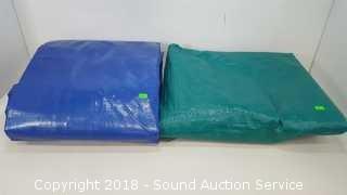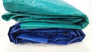 Lot #0090: 11ft x 12ft Teal Tarp & 12ft x 16ft Blue Tarp