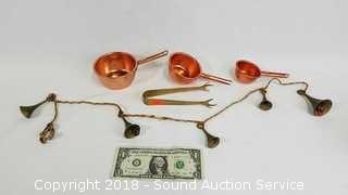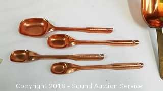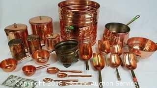 Nesting Canisters (3" to 5-1/2" H, 3-1/2" to 6" diameter), S/P Shakers, Strainer, Measuring Cups, Measuring Spoons, Pot, and Various Size Scoops. The auctioneer shall not be responsible for the correct description, authenticity, genuineness of, estimated selling price of, or defect in any lot, and makes no warranty in connection therewith. No allowance will be made or sale set aside on account of any incorrectness, error in cataloging, or any imperfection not noted. No deduction will be allowed on damaged articles as all goods being exposed for public exhibition are sold “as is” and without recourse. All measurements and sizes - are approximate. CLAIMS - No claims will be allowed after goods are removed from premises. All lots - to be sold AS IS, WHERE IS. ALL SALES FINAL, WE DO NOT ACCEPT RETURNS.