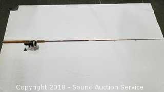 Rod is 2pc. fiberglass Reegill, Reede McGill. The auctioneer shall not be responsible for the correct description, authenticity, genuineness of, estimated selling price of, or defect in any lot, and makes no warranty in connection therewith. No allowance will be made or sale set aside on account of any incorrectness, error in cataloging, or any imperfection not noted. No deduction will be allowed on damaged articles as all goods being exposed for public exhibition are sold “as is” and without recourse. All measurements and sizes - are approximate. CLAIMS - No claims will be allowed after goods are removed from premises. All lots - to be sold AS IS, WHERE IS. ALL SALES FINAL, WE DO NOT ACCEPT RETURNS.