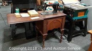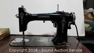 Lot #0239: Antique Graybar Cast Iron Sewing Machine w/Cabinet