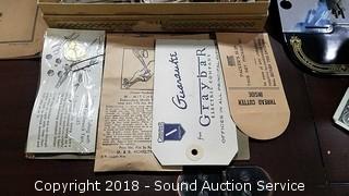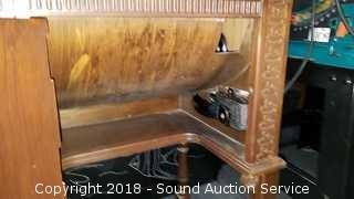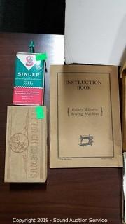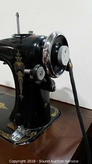 Knee pedal. Comes with sewing machine oil, original instruction manual, tons of feet and accessories. Serial B368270. Patented October 5, 1920. Made in USA. Both sewing machine and cabinet are very nice. Approx. 29" H, 20-1/2" W, 17" D (Closed). Open approx. 41" L. The auctioneer shall not be responsible for the correct description, authenticity, genuineness of, estimated selling price of, or defect in any lot, and makes no warranty in connection therewith. No allowance will be made or sale set aside on account of any incorrectness, error in cataloging, or any imperfection not noted. No deduction will be allowed on damaged articles as all goods being exposed for public exhibition are sold “as is” and without recourse. All measurements and sizes - are approximate. CLAIMS - No claims will be allowed after goods are removed from premises. All lots - to be sold AS IS, WHERE IS. ALL SALES FINAL, WE DO NOT ACCEPT RETURNS.