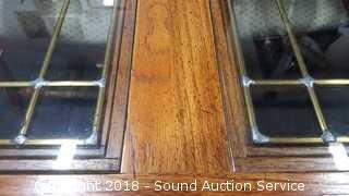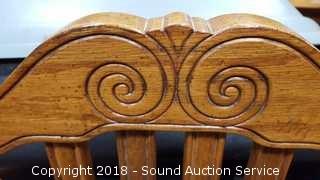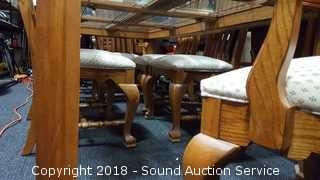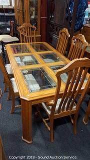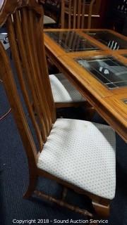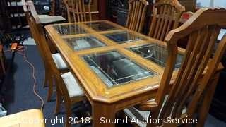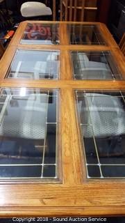 Lot #0112: Beautiful Solid Oak Leaded Glass Top Dining Set