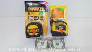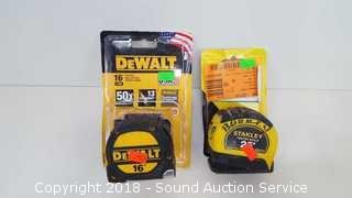 Lot #0073: Dewalt 16ft & Stanley 25ft Tape Measures