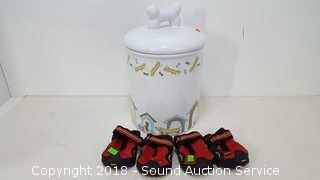 Lot #0087: Dog Bone Jar & Vibram Ruffwear Small Dog Shoes