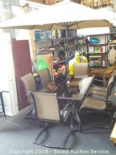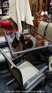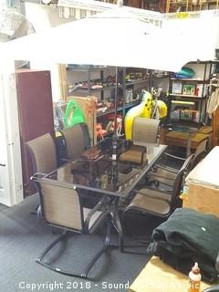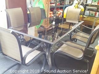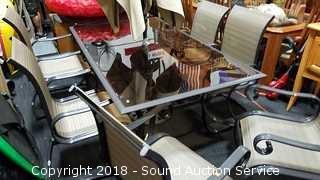 Lot #0104: Metal Base Glass Top Patio Set w/6 Chairs