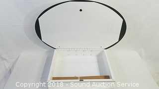 Comes in original box with instructions. Inner dimensions: 15-3/4" x 19-3/4". Approx. 32" x 21" beveled glass mirror, left or right hand opening. Steel body, 2 adjustable glass shelves. Model WMV1032. The auctioneer shall not be responsible for the correct description, authenticity, genuineness of, estimated selling price of, or defect in any lot, and makes no warranty in connection therewith. No allowance will be made or sale set aside on account of any incorrectness, error in cataloging, or any imperfection not noted. No deduction will be allowed on damaged articles as all goods being exposed for public exhibition are sold “as is” and without recourse. All measurements and sizes - are approximate. CLAIMS - No claims will be allowed after goods are removed from premises. All lots - to be sold AS IS, WHERE IS. ALL SALES FINAL, WE DO NOT ACCEPT RETURNS.