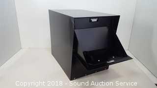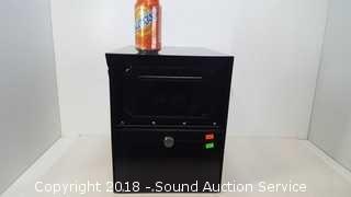 Black. Some damage on the front, still functional. Approx. 18" D, 15" H, 11-1/2" W. The auctioneer shall not be responsible for the correct description, authenticity, genuineness of, estimated selling price of, or defect in any lot, and makes no warranty in connection therewith. No allowance will be made or sale set aside on account of any incorrectness, error in cataloging, or any imperfection not noted. No deduction will be allowed on damaged articles as all goods being exposed for public exhibition are sold “as is” and without recourse. All measurements and sizes - are approximate. CLAIMS - No claims will be allowed after goods are removed from premises. All lots - to be sold AS IS, WHERE IS. ALL SALES FINAL, WE DO NOT ACCEPT RETURNS.