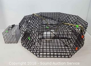 Lot #0141: Octagon Wire Mesh Crab Trap & Bait Box